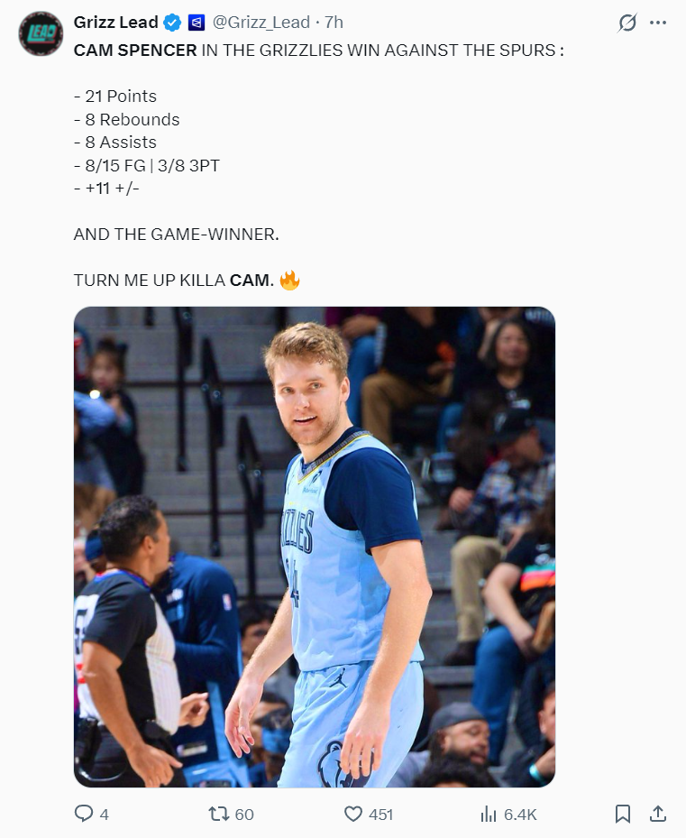 西部第十的灰熊爆冷击败了西部第二的马刺,这场比赛马刺一度领先灰熊11分,而且文班亚马复出爆砍30分5篮板3助攻(21分钟),没想到马刺吞...